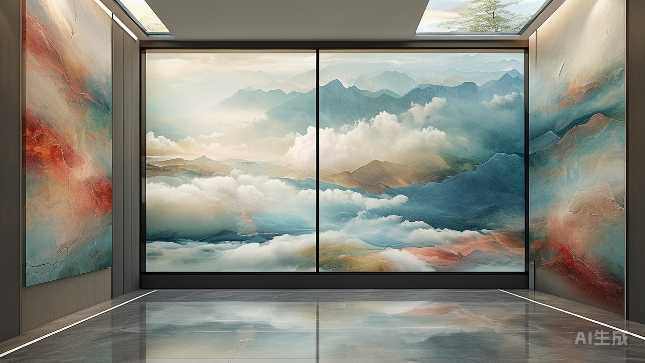 其一,浑然天成的整体感。当墙面化作一幅连续完整的巨幅艺术,视线自然流淌其上,空间被无限延展放大,小客厅也能拥有开阔气度。 其二,视觉的无限延伸。纹理从墙面向各个维度自然延展,仿佛在诉说一个无穷无尽的故事,赋予空间流动的生命力。 其三,定制化的艺术自由。如同一位艺术家为你独家创作,从山水云海到抽象意境,纹理、色彩皆可按你的审美与空间调性精心定制。