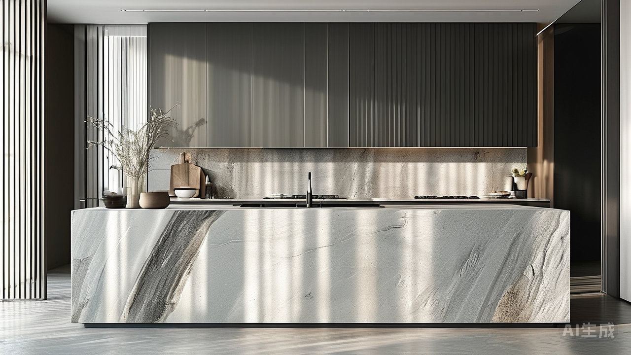 这种融合在现代轻奢宅邸中焕发着生命力:走进客厅,一面从地至顶的巨幅岩板主墙,如静默的山水屏障,瞬间奠定空间气韵。开放式厨房里,一体成型的岩板岛台,不仅是烹饪核心,更是流动的社交枢纽——其无缝表面与下方隐藏式收纳柜线条呼应,功能被优雅消隐。卫浴空间中,超大规格岩板铺就的墙面与地面浑然一体,仅用金属窄框点缀细节,淋浴区也无需凸起的挡水基石,水波如镜面般在极简线条下悄然导流,视觉上达成“无界”的轻盈。 这便是极简线条与岩板美学共同书写的空间诗篇:以理性的精准度量,释放感性的艺术能量。线条的克制为岩板的自然张力预留舞台,岩板的坚韧与华美又赋予极简以触手可及的精致温度。两者彼此成就,共同指向一种新型奢华理念——它不依赖繁复堆叠,而源于内在品质的精准表达与感官体验的纯粹提升。 在岩板的冷峻光泽与线条的简洁律动间,我们找到了当代居住的答案:真正的轻奢,是功能与美学在空间画布上的共生共舞。它用减法演绎奢华,以沉默诉说丰富,最终指向一种无需声张的、深入骨髓的优雅体验。 |